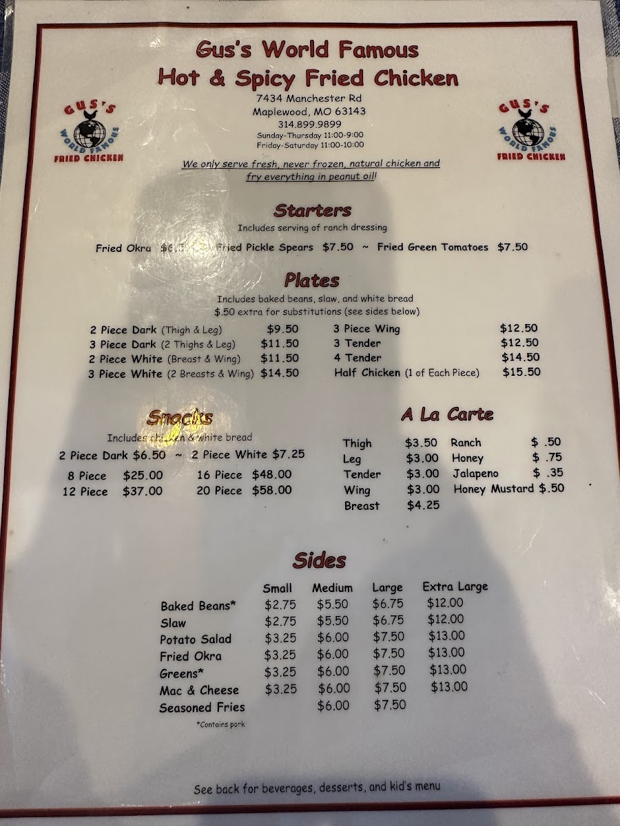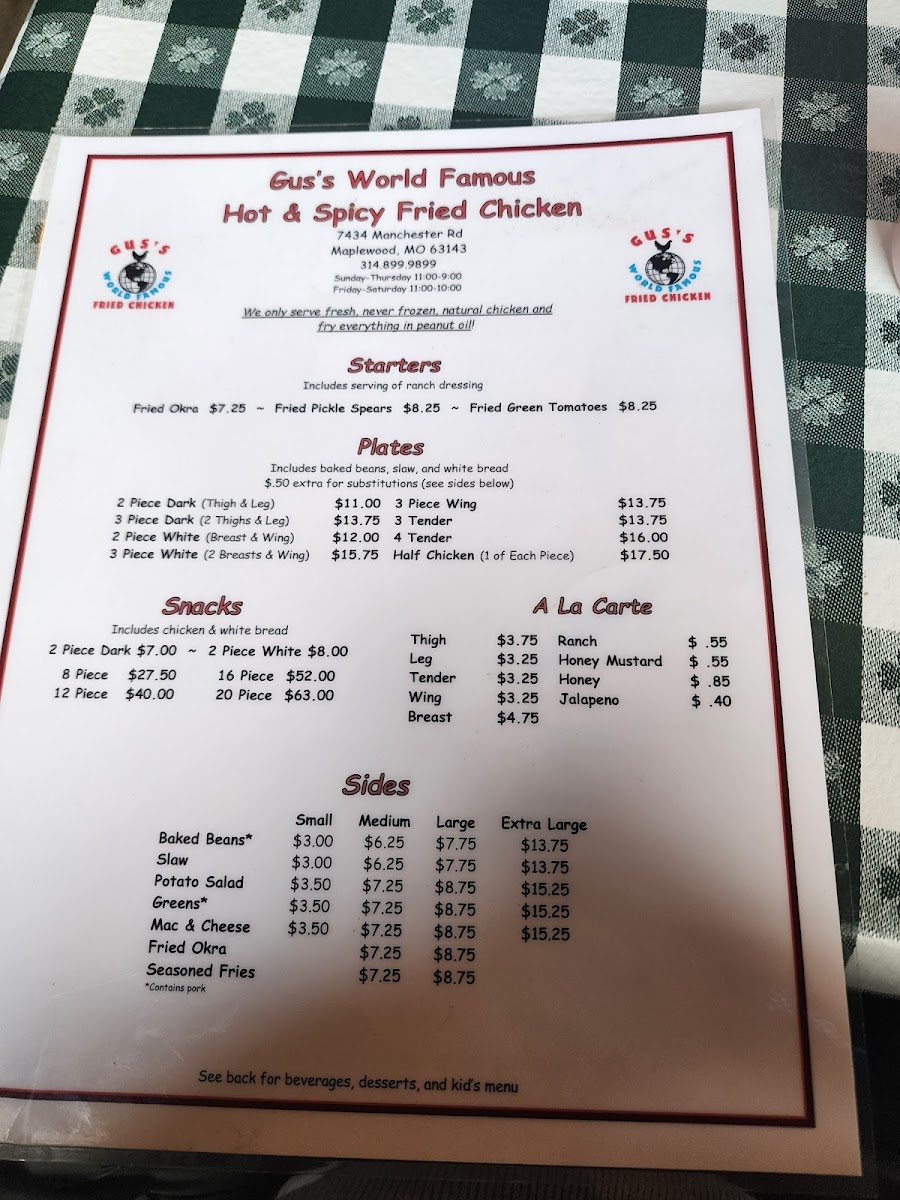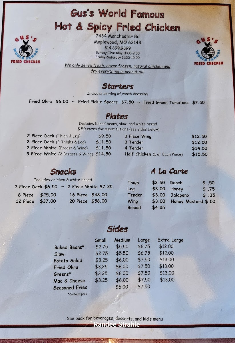 Welcome to Gus’s World Famous Fried Chicken Maplewood, where mouthwatering comfort food meets a cozy atmosphere. Located at 7434 Manchester Rd, Maplewood, MO, this gem serves fried chicken that's not just famous; it's legendary. Every piece is cooked to order, ensuring that it's piping hot, crispy, and bursting with flavor. Customers rave about the juicy, tender meat, perfectly complemented by a unique spice blend that boasts a little kick.